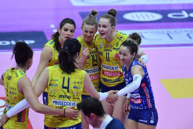 与瓦莱福利亚一战,科内利亚诺女排尽遣主力,主攻加比(巴西)、朱婷(中国),副攻齐里切拉、法尔,接应哈克(瑞典),二传沃沃什(波兰)和自由人德吉纳罗均首发出战。两队激战四局,科内利亚诺技高一筹3-1拿下,本赛季在联赛和杯赛中三杀瓦莱福利亚。